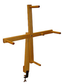 We've gone an extra step: where the handle screws through the base we make a wooden insert at the right grain so the wooden thread will have a long, trouble free life. The swift can be clamped vertically or horizontally. Knitters, especially, link the ball winder and the swift for transforming skeins into center pull balls. |